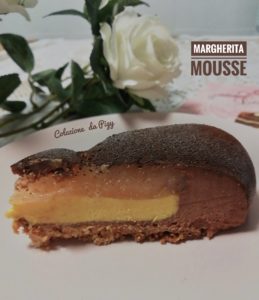 Ogni tanto mi piace provare a fare dolci moderni. Mi piace provare a creare consistenze diverse in strati ben definiti. La strada è lunga e non proprio facile, ma non mi spaventa. Per fare questa Margherita Mousse, vi dico solo che ho rifatto due volte la mousse al cioccolato perché non ne ero soddisfatta. Quello di cui sono contenta è che non mi sono persa d’animo, tempo fa avrei buttato via tutto, ho rifatto la preparazione e portato a termine il dolce. E’ vero che questa torta non è bellissima e che ho tanto ancora da imparare, ma sono comunque orgogliosa del mio operato.
