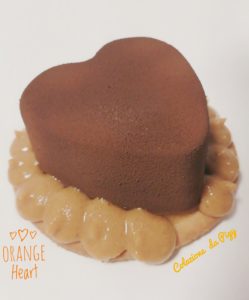 Si tratta di una base di frolla al cocco e arancia, un velo di confettura all’arancio, un cuore di mousse al cioccolato con all’interno un cremoso all’arancia, decorato con pralinato. Per le ricette dei vari ingredienti ringrazio @valerio.barralis che mi ha ispirato.