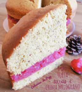 Dato che ero un po’ diffidente sul sapore del melograno, ho iniziato subito la preparazione della crema. I miei dubbi sono stati spazzati via al primo assaggio. La crema è davvero ottima; e abbinata poi all’impasto alla nocciola della torta , formano un mix perfetto. Gusti autunnali ma con dei colori vivaci, dovete assolutamente provarla.