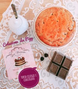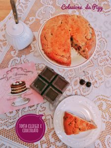 E’ iniziata ufficialmente la stagione delle ciliegie, anche se sinceramente si fa fatica trovarle davvero buone. Allora ho deciso di utilizzarle in una torta golosa, insieme a quelle sciroppate (di cui sono ghiotta) e alle gocce di cioccolato fondente. La ricetta originale di @ilrisottoperfetto, chiedeva solo quelle fresche, ma come sempre devo fare qualche modifica, è più forte di me. Il bello di questa ricetta è che in pochi passaggi la torta è in forno e tra gli ingredienti non ci sono burro e uova…quindi non avete scuse! E che profumo che avrete in cucina! La colazione sarà davvero golosa, ve lo garantisco.